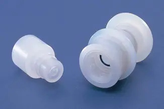 高純度薬品容器の大型化・大口径化に伴い開発された安全でクリーンに薬液を供給できるコネクター