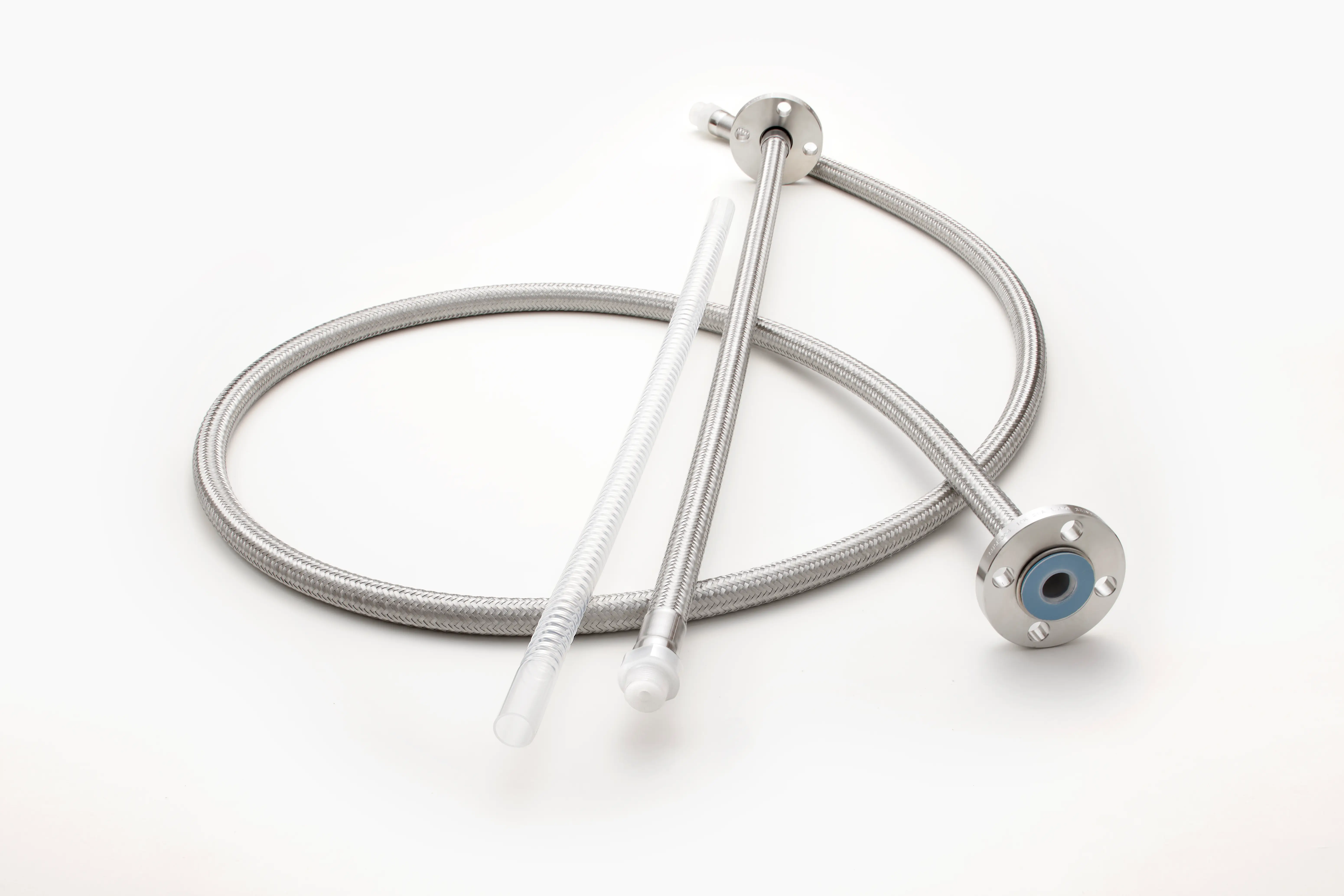 接液部がフッ素樹脂で製造された高純度薬品用ケミカルホースです。多種多様な仕様を取り揃えています。